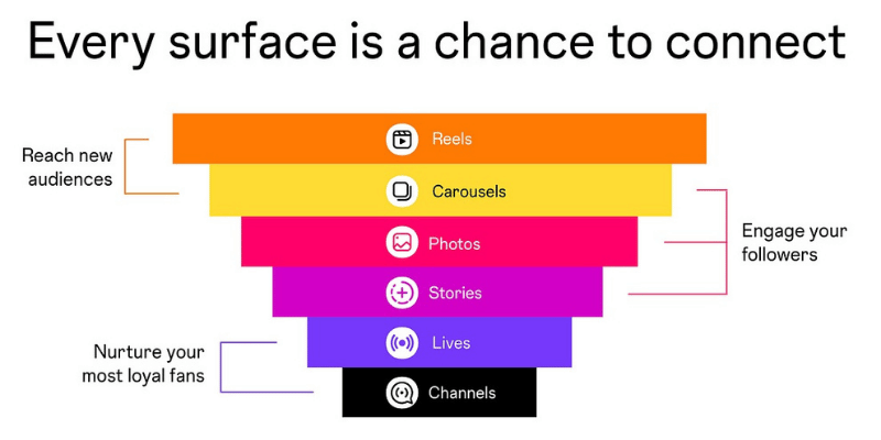Instagram shares the best formats for your goals. Reels and Carousels help you reach new people, while Photos, Stories, and Carousels boost engagement. Lives and Broadcast Channels deepen loyalty.